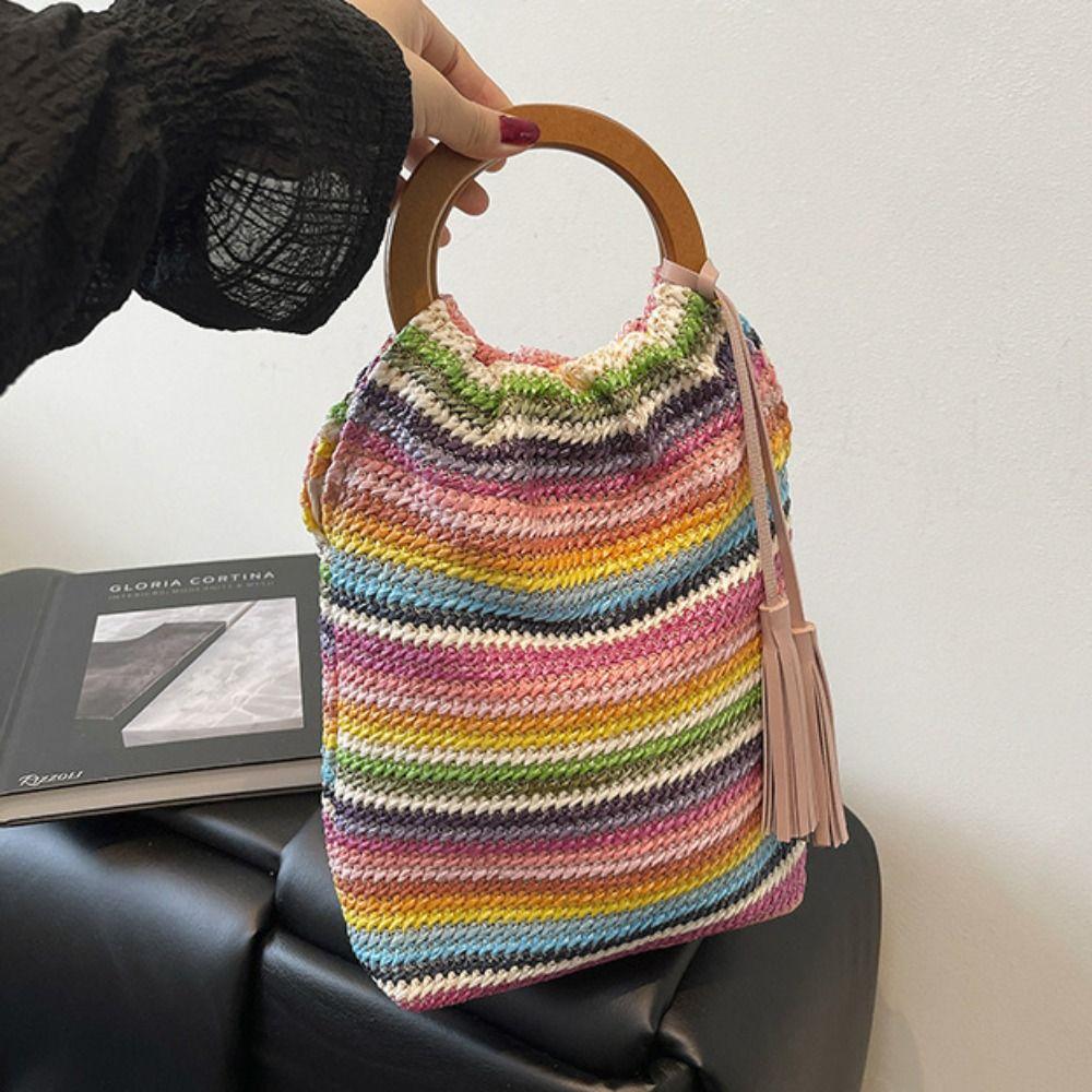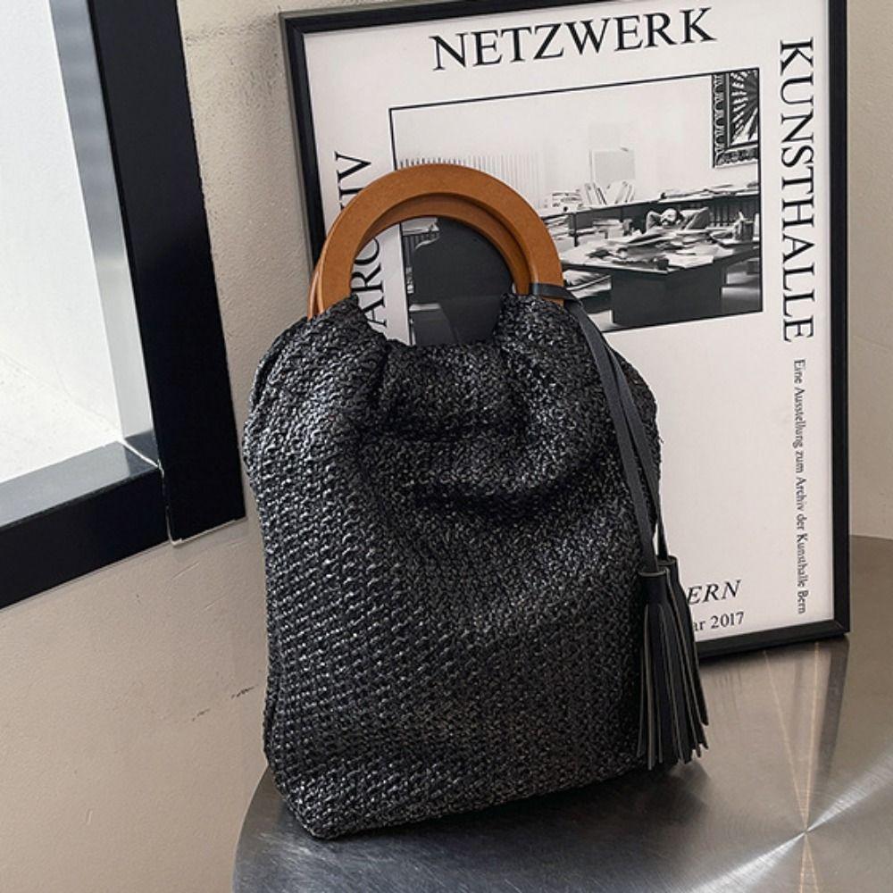 with Tassel Woven Crochet Bag Hollow Out Underarm Bag Trendy Summer Bucket Bag Summer