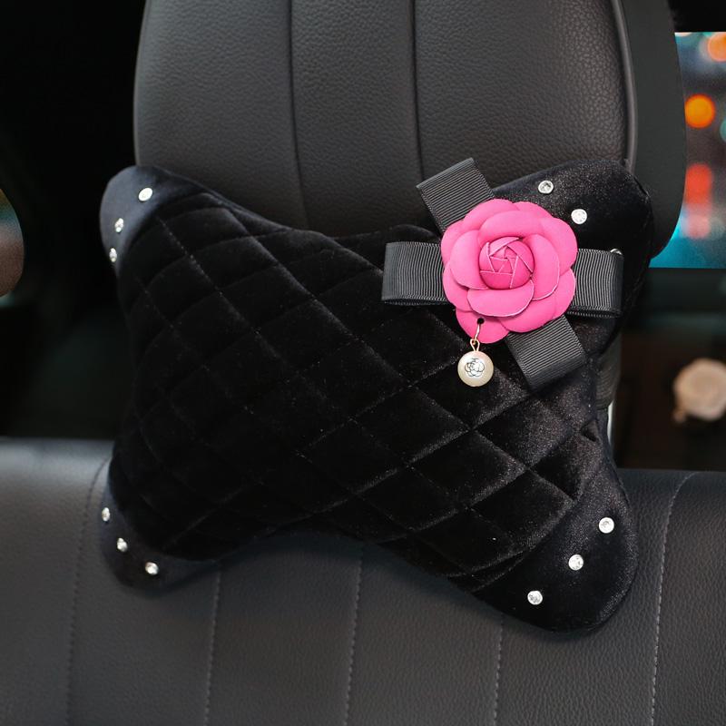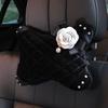 Мода Мягкая Плюшевая Кристальная Подушка Подголовник для Шеи Автомобиля Жемчужный Цветок Камелии Аксессуар для Поддержки Головы из Бархата