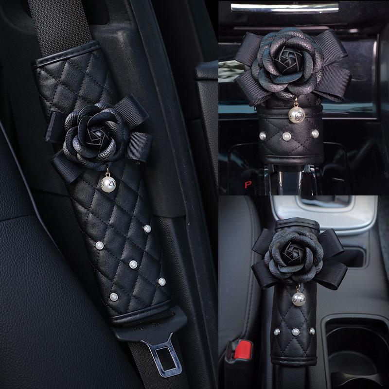 Креативный Жемчужный Цветок Камелии Чехол на ремень безопасности для автомобильного кресла Накладка на плечо Автостайлинг Женский Автомобильный ремень безопасности Накладки на рычаг переключения передач