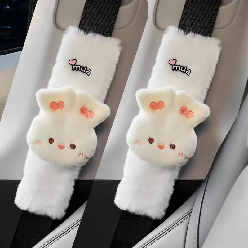 Милый мультяшный поросенок кролик чехол на ремень безопасности для автомобиля имитация кроличьего меха автомобильная накладка безопасности на плечо мягкий плюшевый чехол-протектор