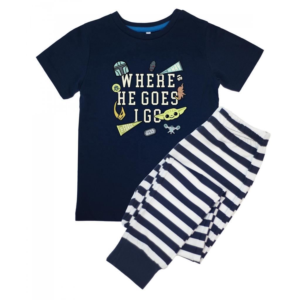 Star Wars Mandalorian Boys Where He Goes Stripe Short-Sleeved Long Pyjama Set