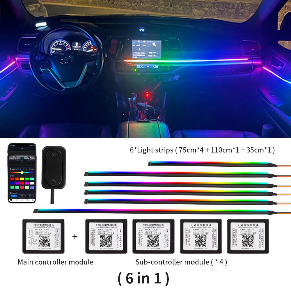 10/14/18 в 1 Светодиодные автомобильные атмосферные огни 210 64 Цвета RGB Симфония Стример Bluetooth Радужные акриловые полосы Комплект атмосферной лампы 12 В