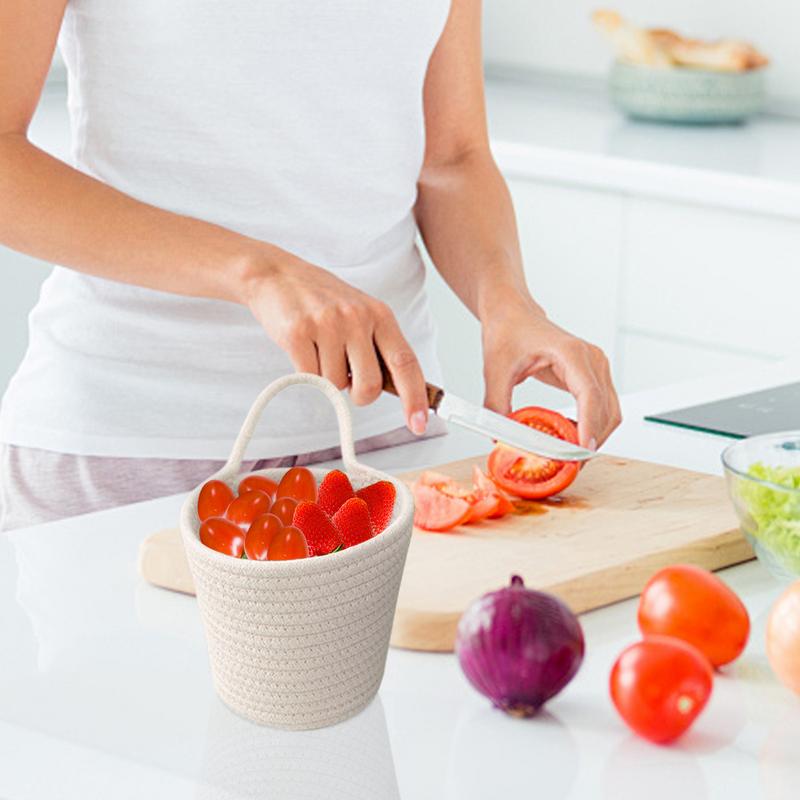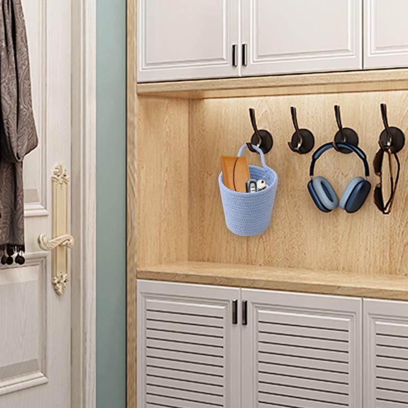 Органайзер ручной работы, плетеный контейнер, корзина для хранения из хлопковой веревки, настенная корзина с ручкой, для хранения детских игрушек, контейнеры для овощей из веревки