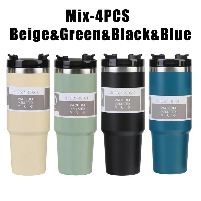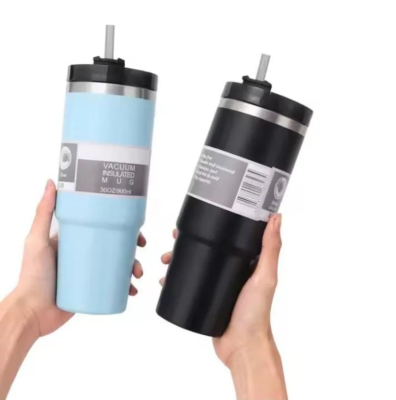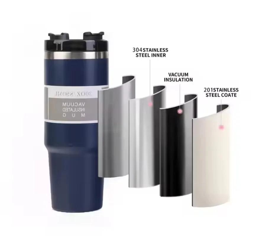 890ml High Quality Double Wall Cups 890ML Stainless Steel Portable Coffee Mug For Car With Lids Tumbler With Handle And Straw