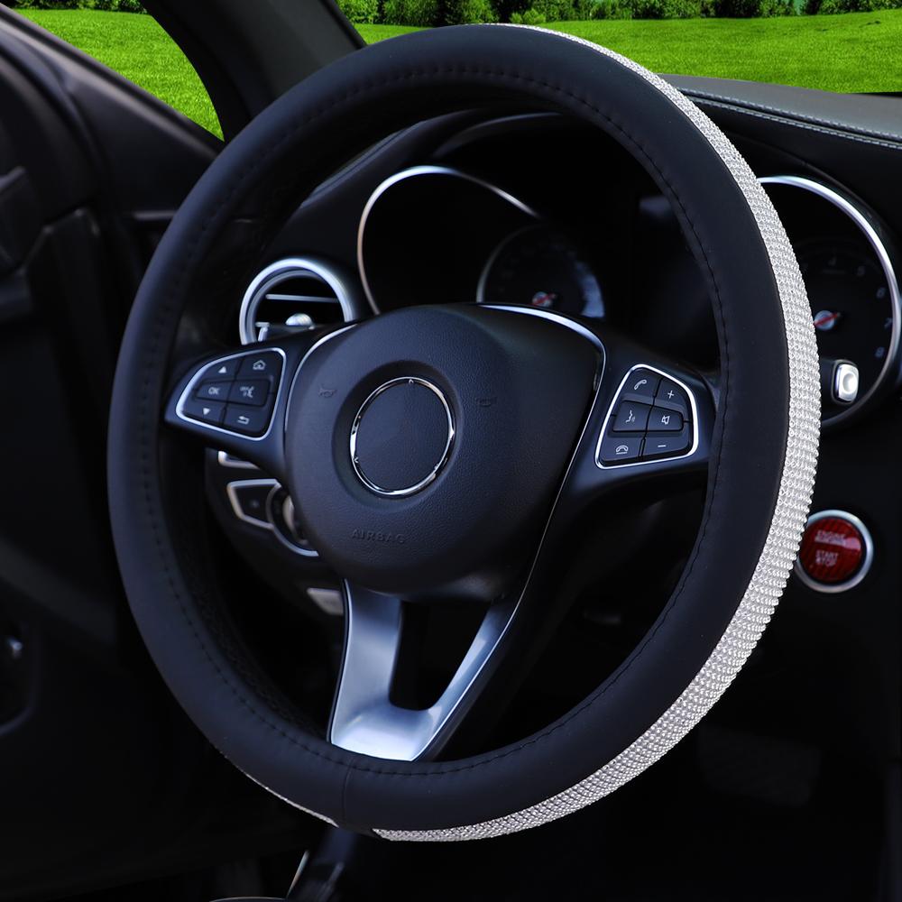 1 чехол на руль автомобиля из ПУ-кожи с бриллиантовой инкрустацией Blingbling подходит для 14,5-15 "автотоваров