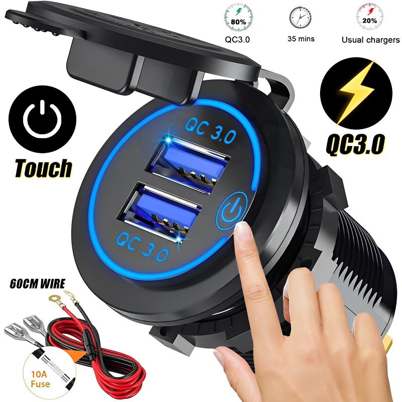 12В/24В USB-выход Двойной разъем для зарядки QC3.0 Гнездо прикуривателя Водонепроницаемый сенсорный переключатель Быстрый адаптер Автомобильные аксессуары