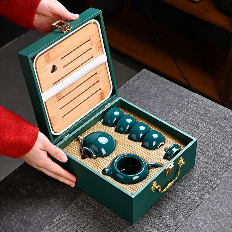 Чайный сервиз Динъяо, полный набор, включая чайный поднос с подарочной коробкой, керамические подарки для кунг-фу, высококлассные случайные подарки