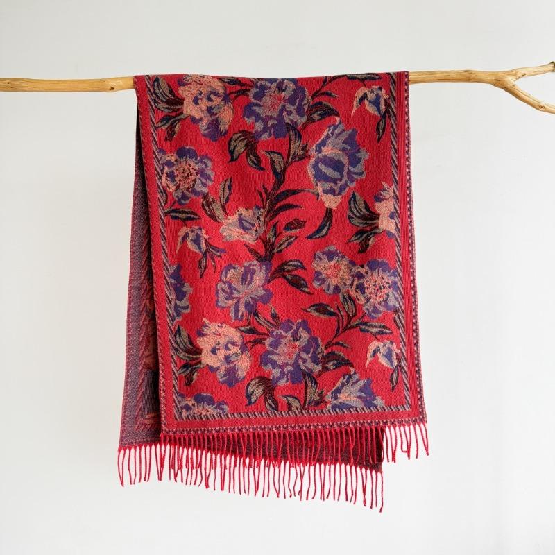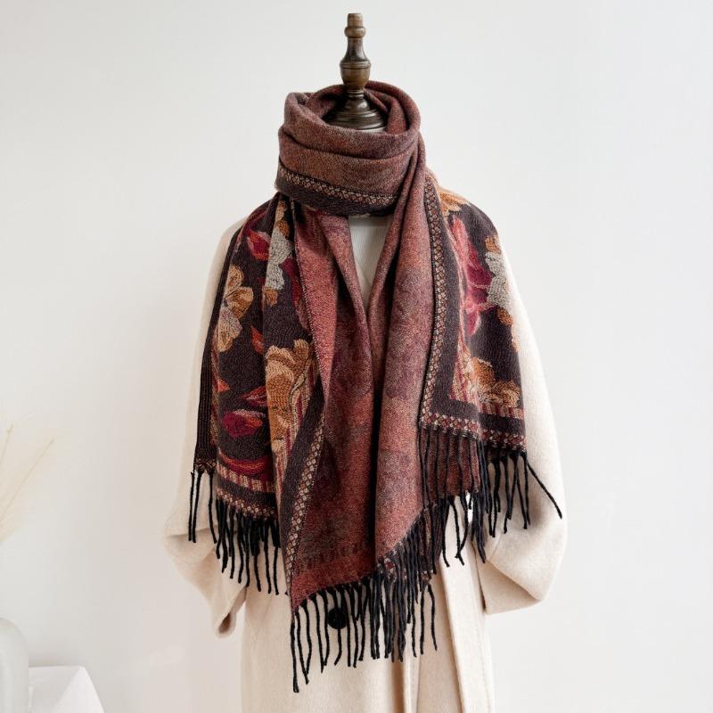 Осенне-зимний ретро шарф с бахромой, кашемировая шаль для кондиционера, большой размер, теплый шарф