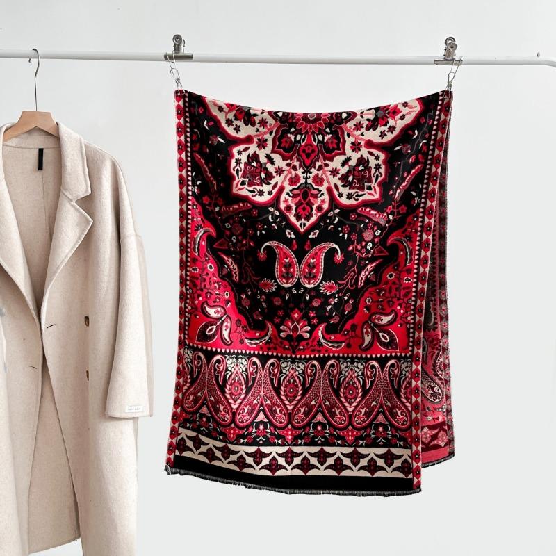 Женская шаль осень и зима новая имитация кашемира шарф с узором "цветок кешью" женственность длинная бахрома двусторонний шарф двойного назначения