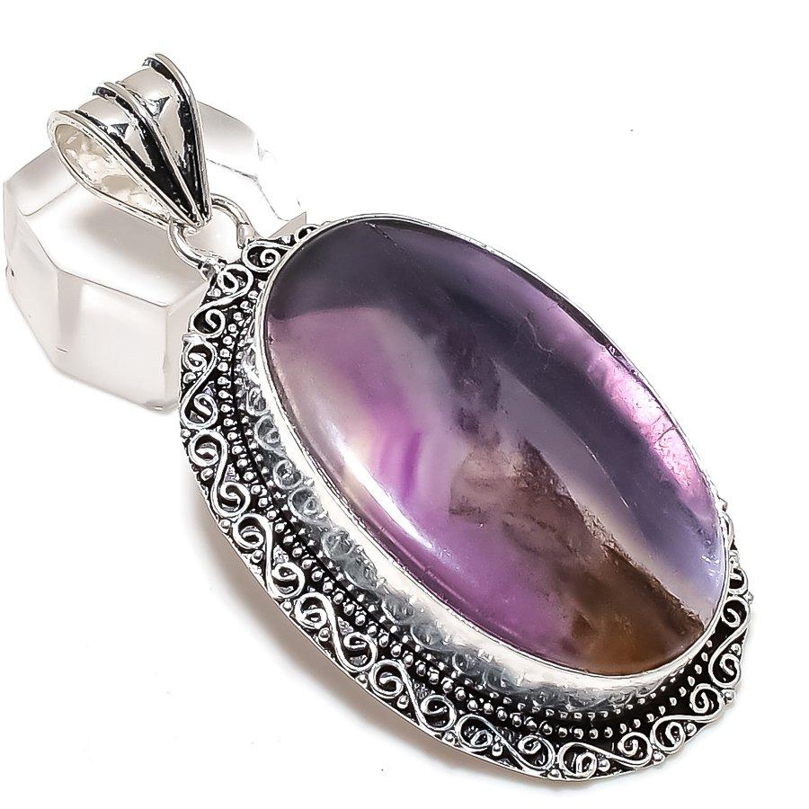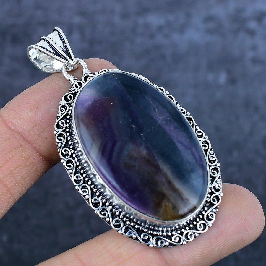 Флюорит Драгоценный камень 925 Стерлинговое серебро Ювелирная подвеска 2,56"
