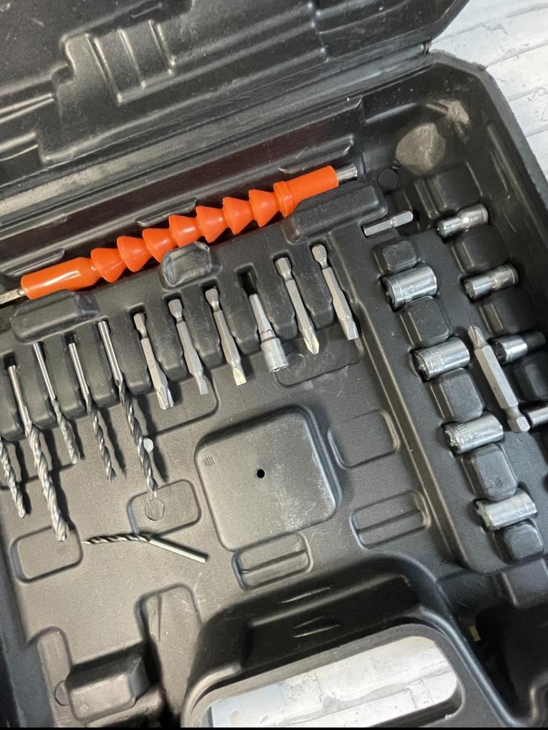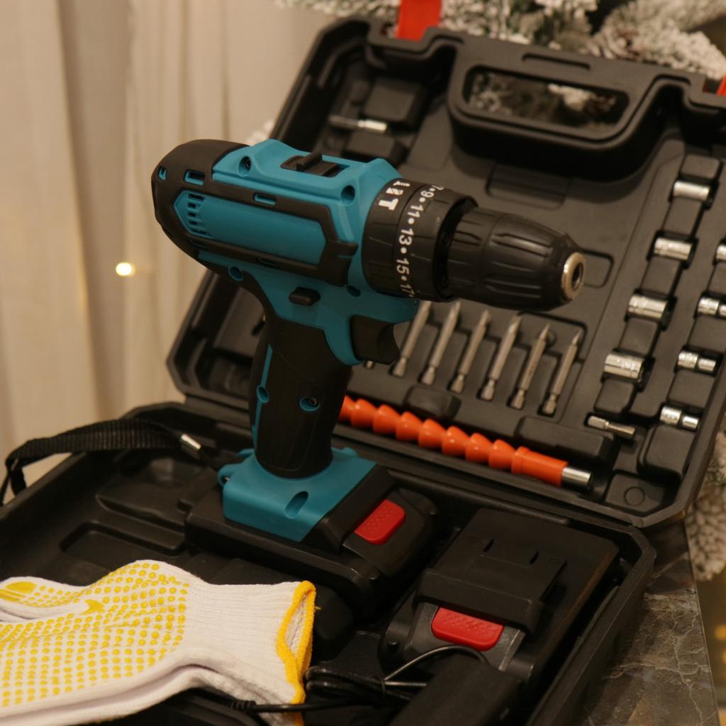 Шуруповерт аккумуляторный Универсальный аккумуляторный шуруповерт - надежный помощник для профессионалов и домашних мастеров в ремонте и строительстве. Приходит в кейсе, все необходимое в наборе есть. Работает от АКБ, в наборе 2 аккумулятора, что удобно, но можно взят с одним, от этого зависит цена. Подходит для дерева, металла, плитки и бетона. Совершает до 2800 оборотов в минуту В наборе 24 сменные насадки и гибкий вал. Позволяет не только закручивать крепеж, но и сверлить отверстия в плотных и твердых материалах. Оснащен двухскоростным редуктором, где первая скорость оптимальна для точной и аккуратной установки креплений, а вторая - для сверления. Яркая подсветка у электрошуруповерта значительно облегчает эксплуатацию в условиях плохого освещения. Защита от перегрева обеспечивает долговечность и безопасность. Быстрозажимной патрон дает возможность быстро менять сверла, головки и биты. Прорезиненный корпус и ручка создают удобный хват в руке. Отличный набор, очень остались им довольны. Советую.