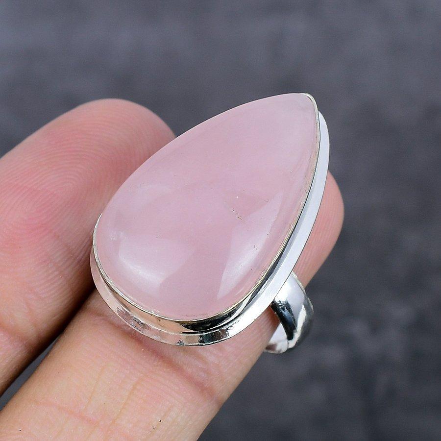 Ювелирное кольцо из стерлингового серебра 925 пробы с розовым кварцем, размер 9