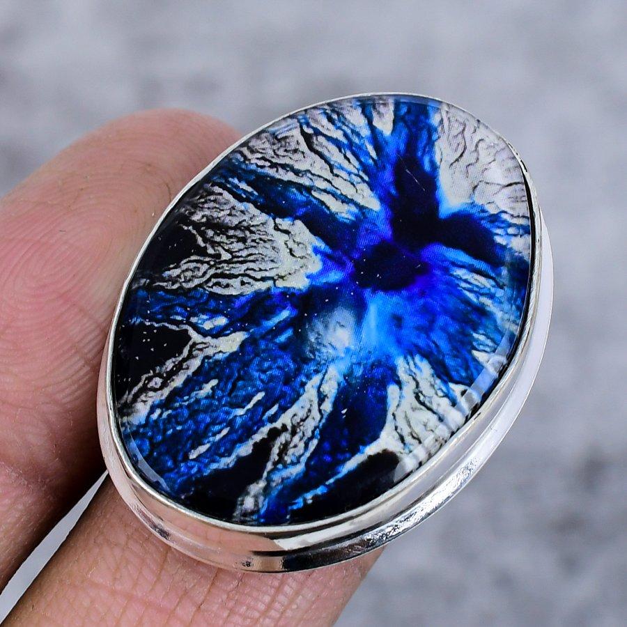 Дихроичный стеклянный драгоценный камень 925 стерлинговое серебро ювелирное кольцо размер 7