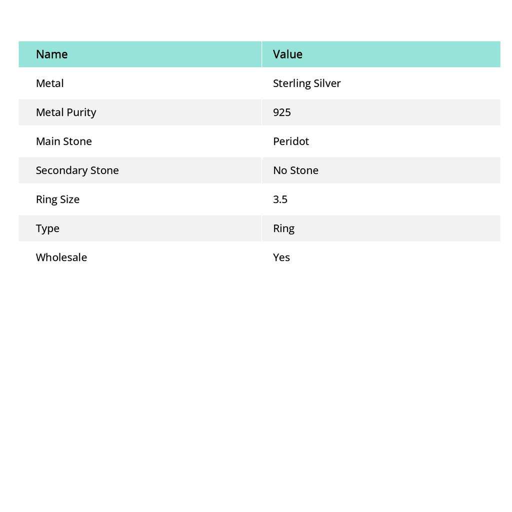 Хризолит Драгоценный камень Ювелирное изделие из серебра 925 пробы Кольцо Размер 3.5