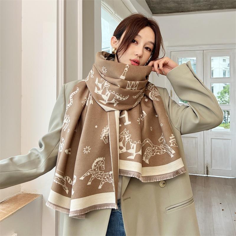 Имитация кашемира шарф с буквенным принтом женский высококачественный двусторонний шарф утолщенная теплая шаль универсальный шарф