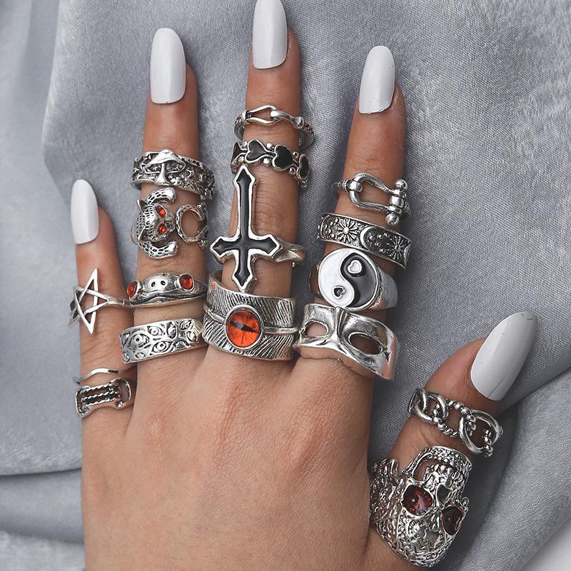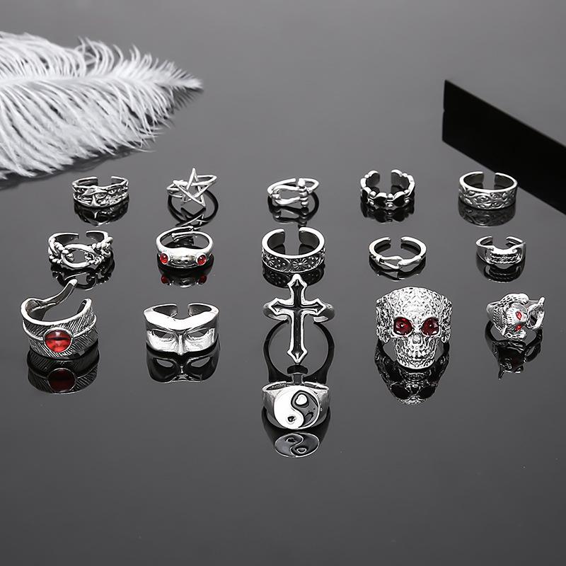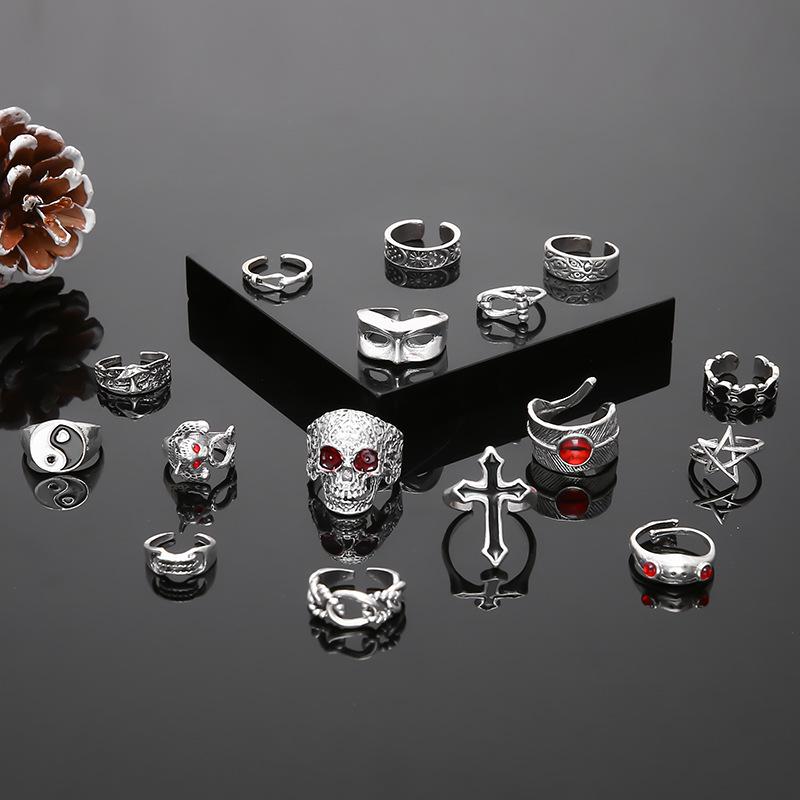 Винтажный череп животного, змея, маска лягушки, регулируемое кольцо, набор ювелирных изделий – 16 штук