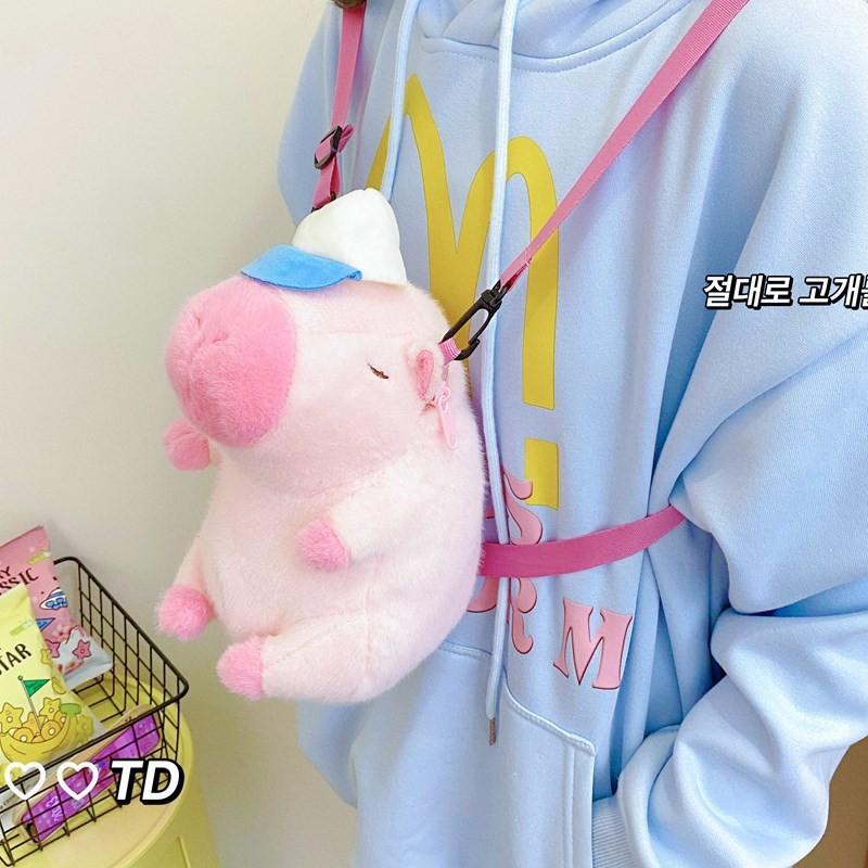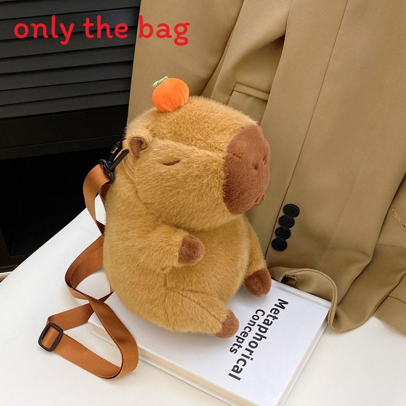 Милый плюшевый рюкзак капибара с шапкой и дизайном с оранжевым цветом на голове для повседневного использования