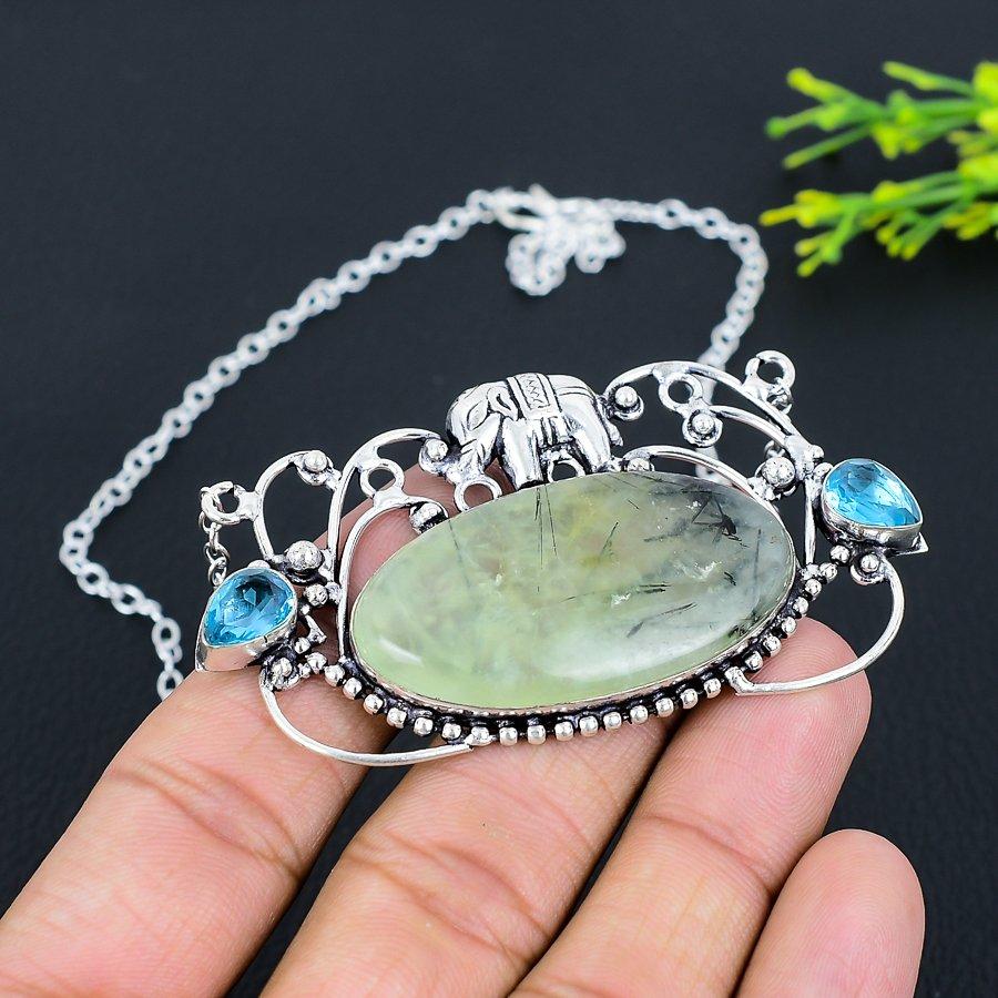Пренит, Голубой Топаз Драгоценный камень 925 Стерлинговое Серебро Подарочное Ювелирное Изделие Ожерелье 18"