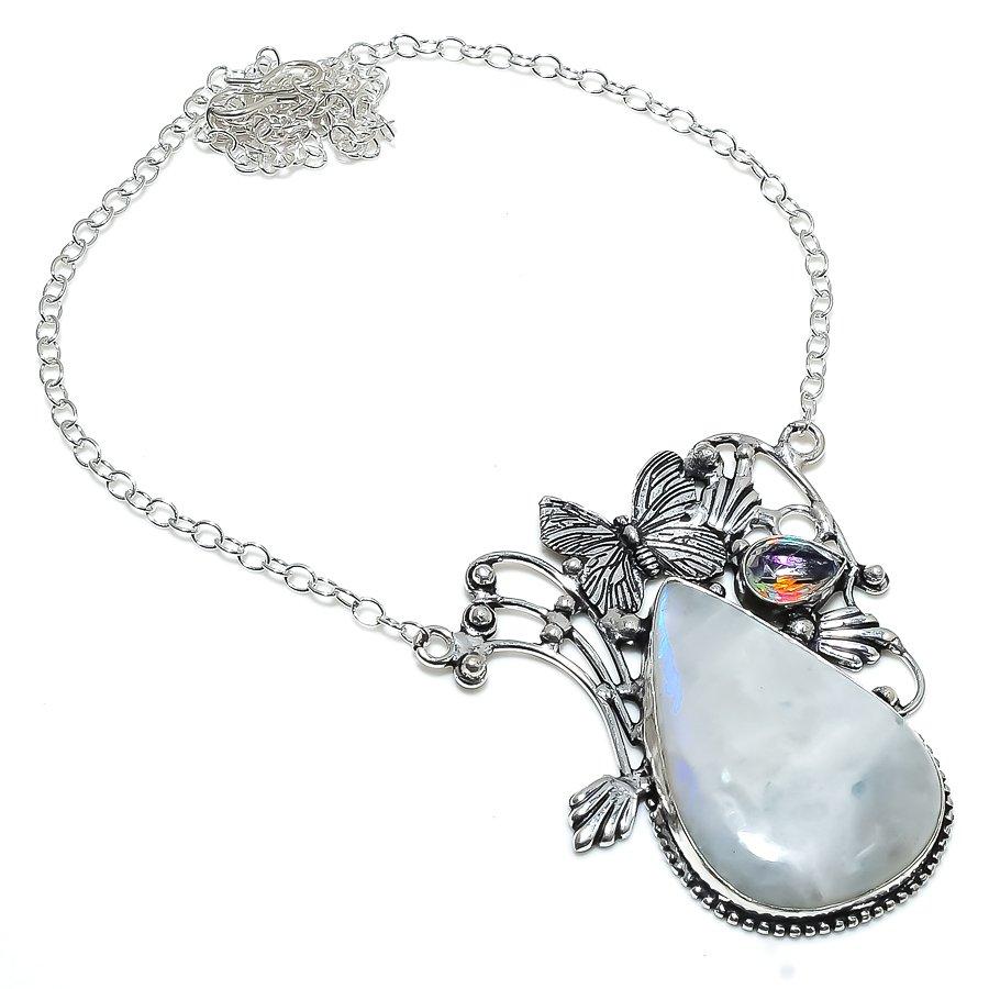 Rainbow Moonstone, Mystic Gemstone 925 Sterling Silver Jewelry Necklace 18"
