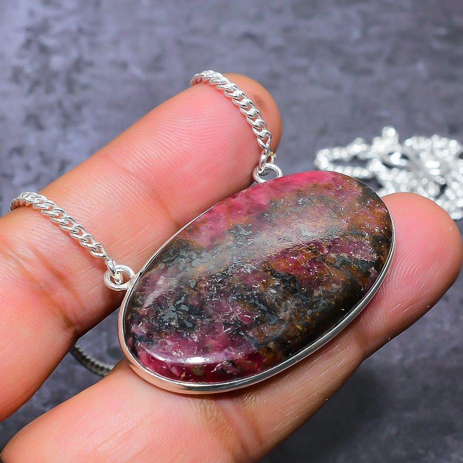 Родонит Драгоценный камень 925 Стерлинговое серебро Ювелирное ожерелье 18"