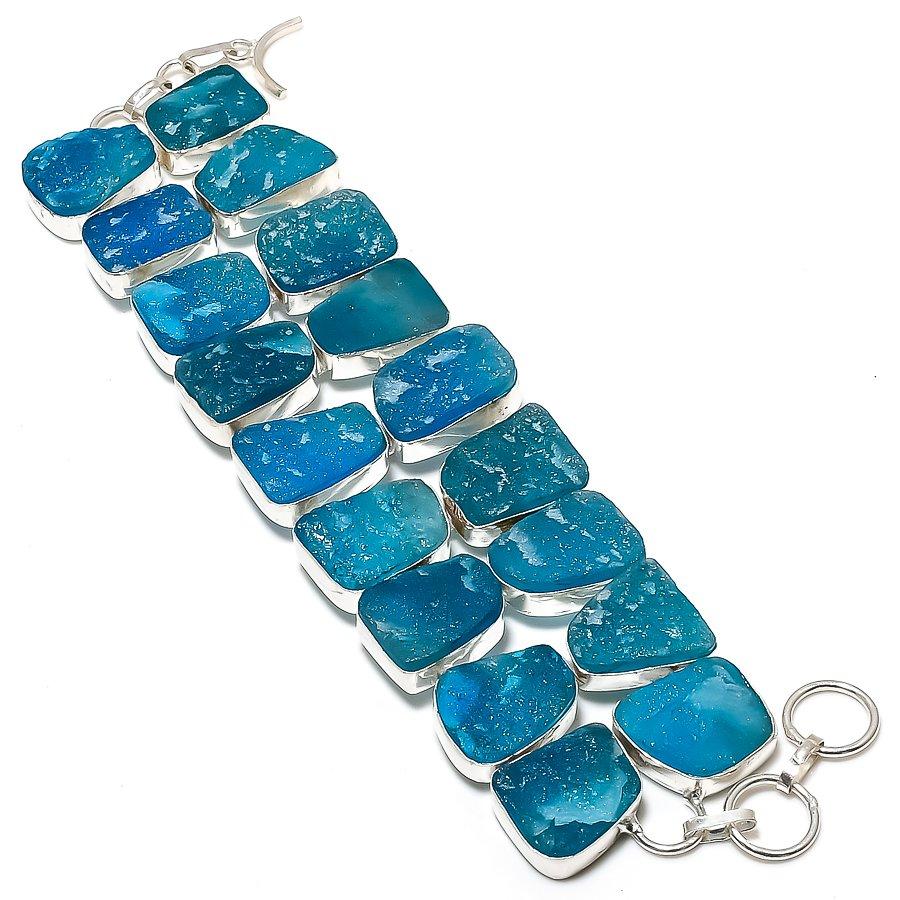 Гемеморфит Друза Драгоценный камень Серебро 925 пробы Браслет 7-8"