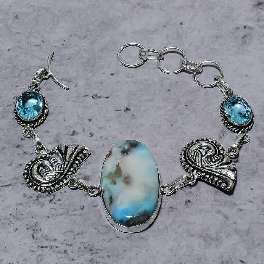 Браслет из серебра 925 пробы с ларимаром и голубым топазом, длина 7-8 дюймов