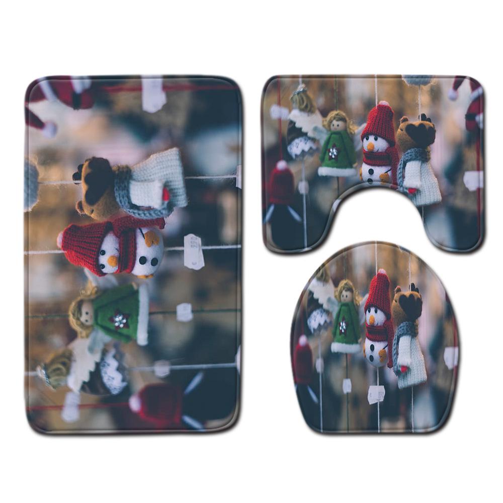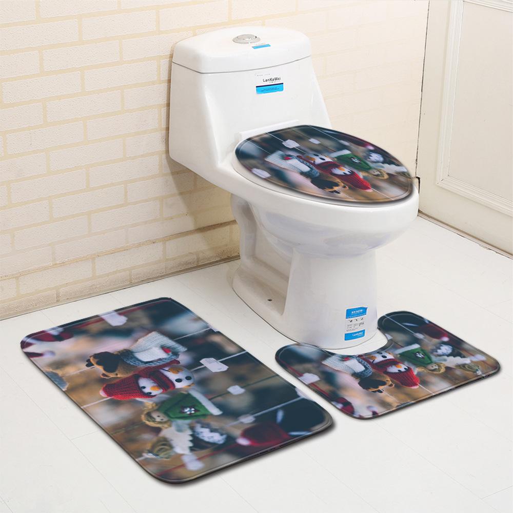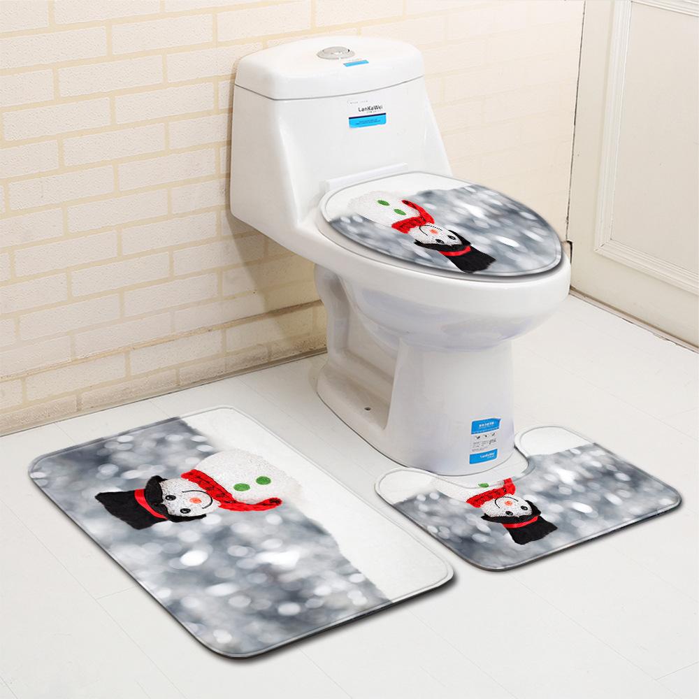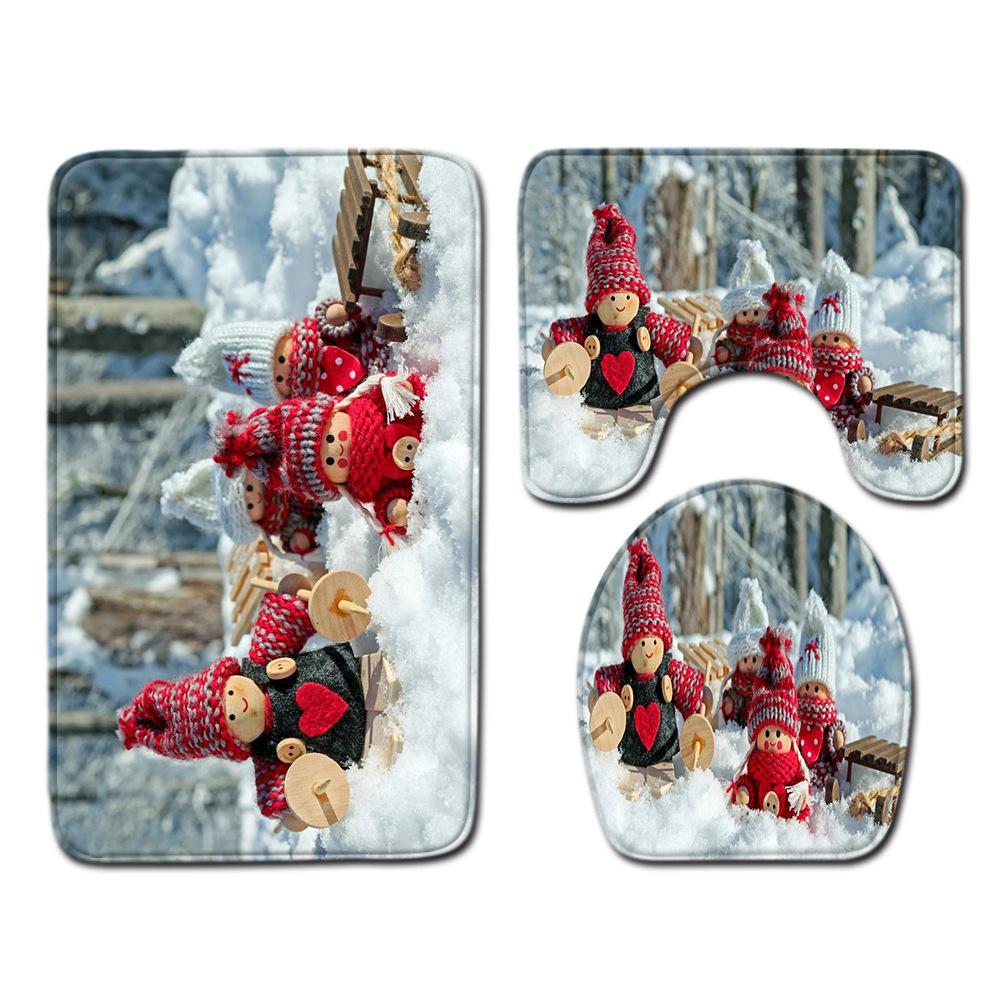 Рождественский коврик для ванной, туалетный трехпредметный набор