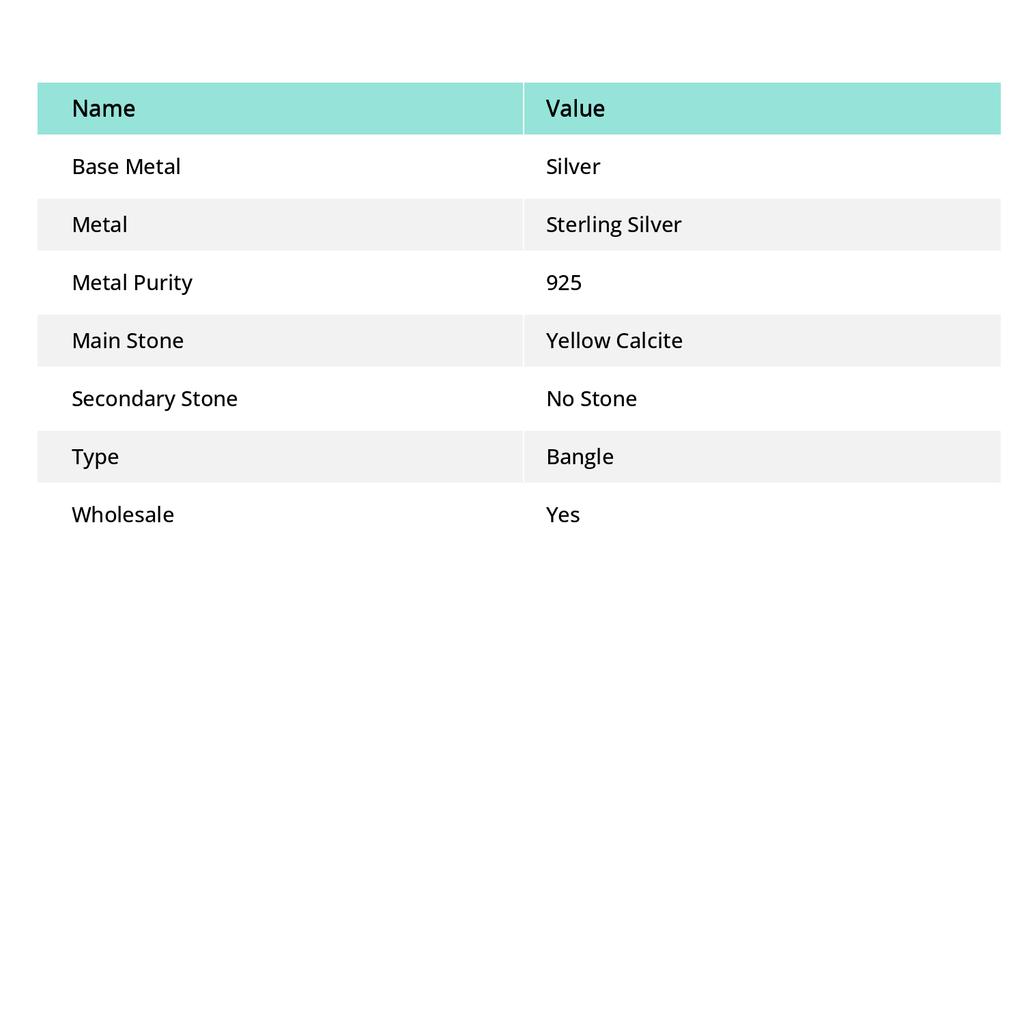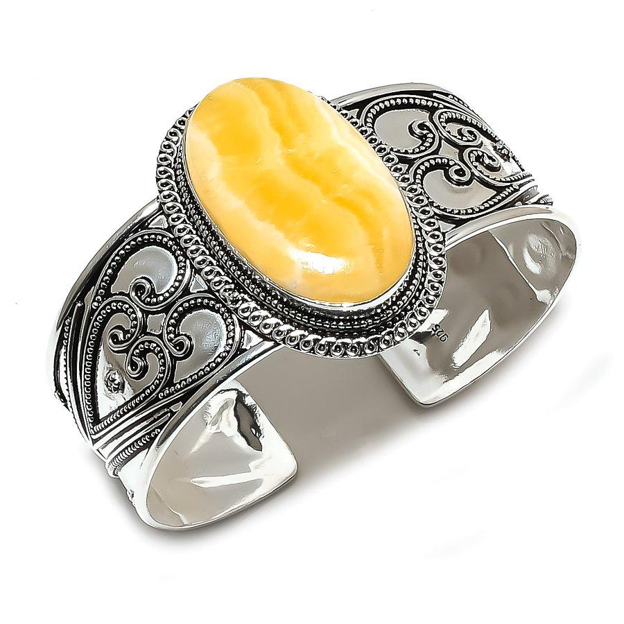 Желтый Кальцит Драгоценный Камень 925 Стерлинговое Серебро Манжета Браслет Регулируемый