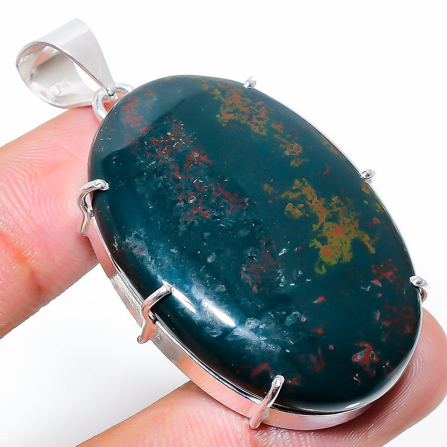 Гематит Драгоценный камень 925 Стерлинговое серебро Подарок Ювелирное изделие Подвеска 2.09"