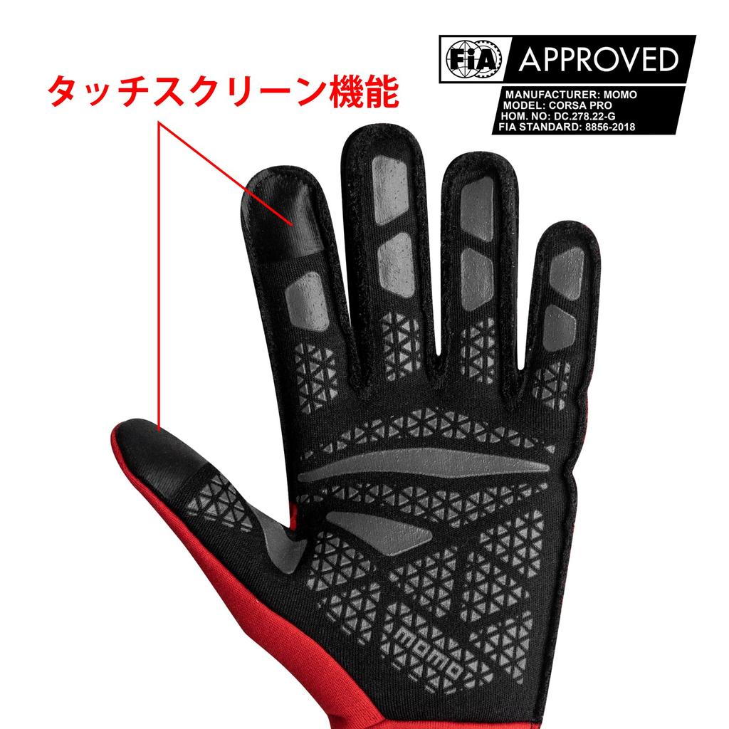 MOMO Одобренные FIA Momo CORSA PRO Гоночные Размер 9 Совместимые с сенсорным экраном 8856-2018 Перчатки, Красные, (M),