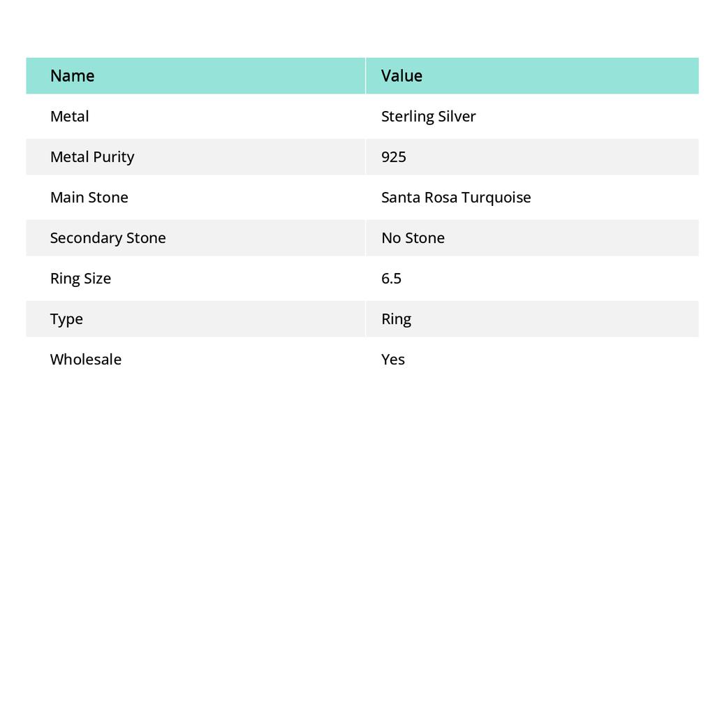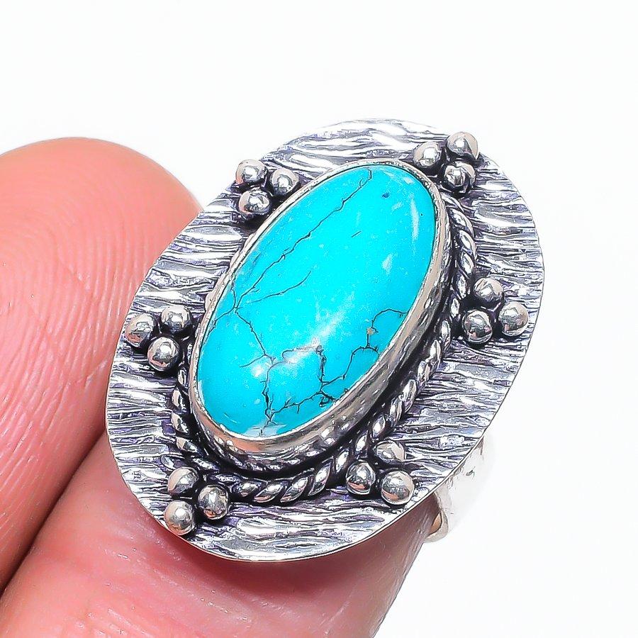 Драгоценный камень бирюза Санта-Роза, серебро 925 пробы, ювелирное кольцо, размер 6,5