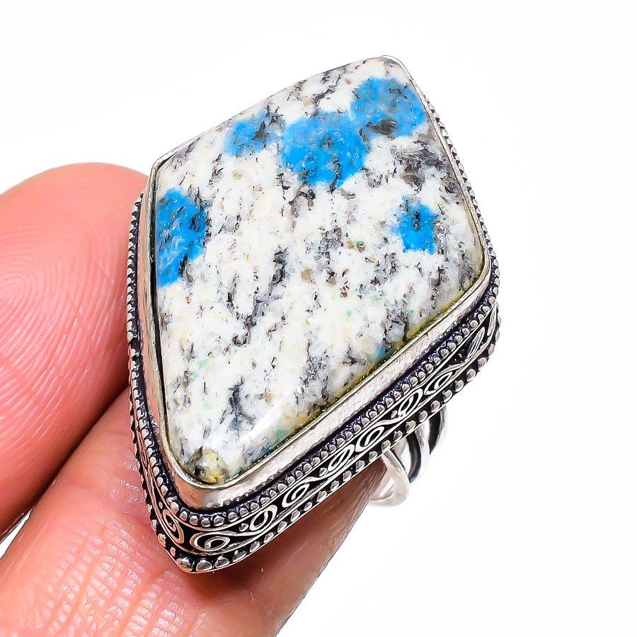 Ювелирное кольцо из стерлингового серебра 925 пробы с синим азуритом K2, размер 8