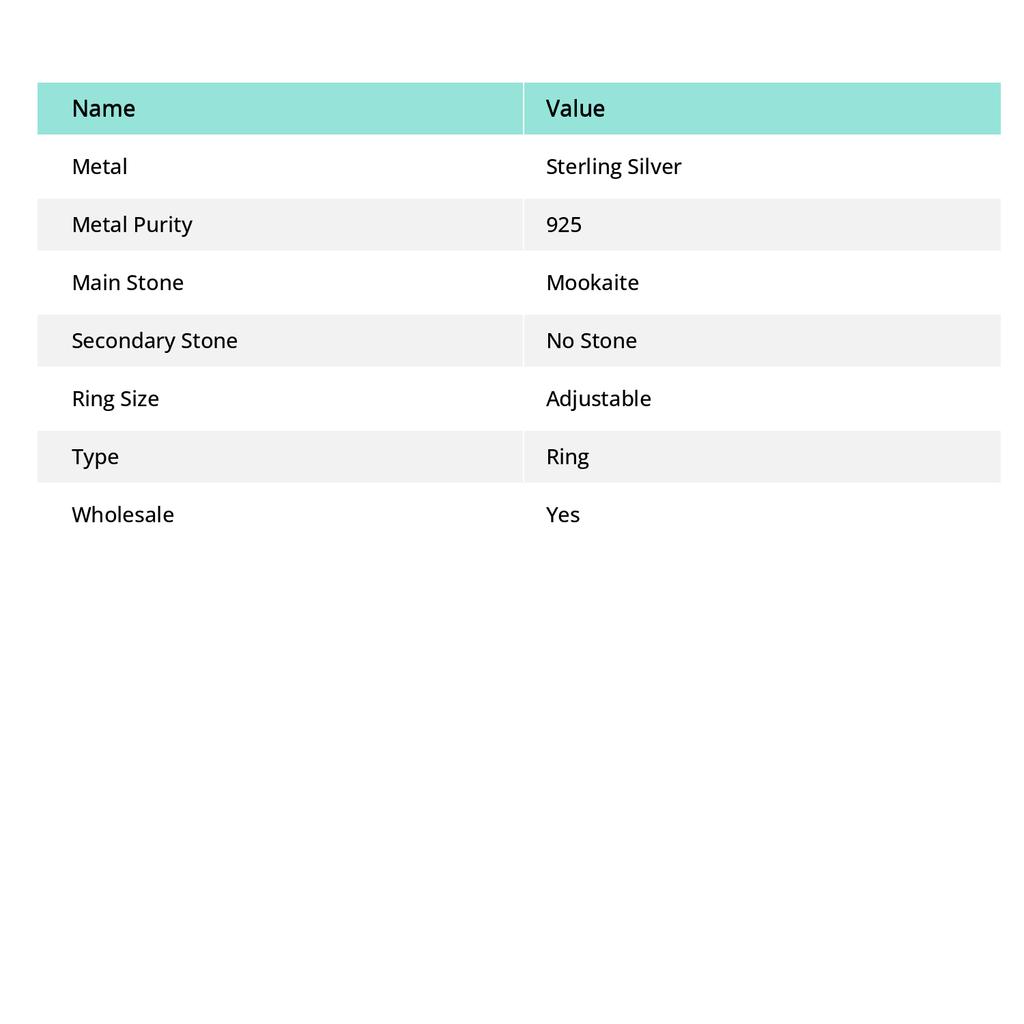 Мукаитовый драгоценный камень Ювелирное изделие из стерлингового серебра 925 пробы Кольцо Размер регулируемый