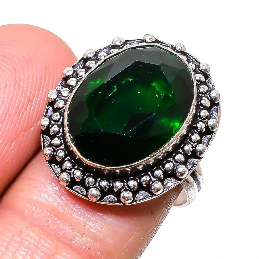 Резной Голубой Кварц Драгоценный Камень 925 Стерлинговое Серебро Ювелирное Кольцо Размер 7.5