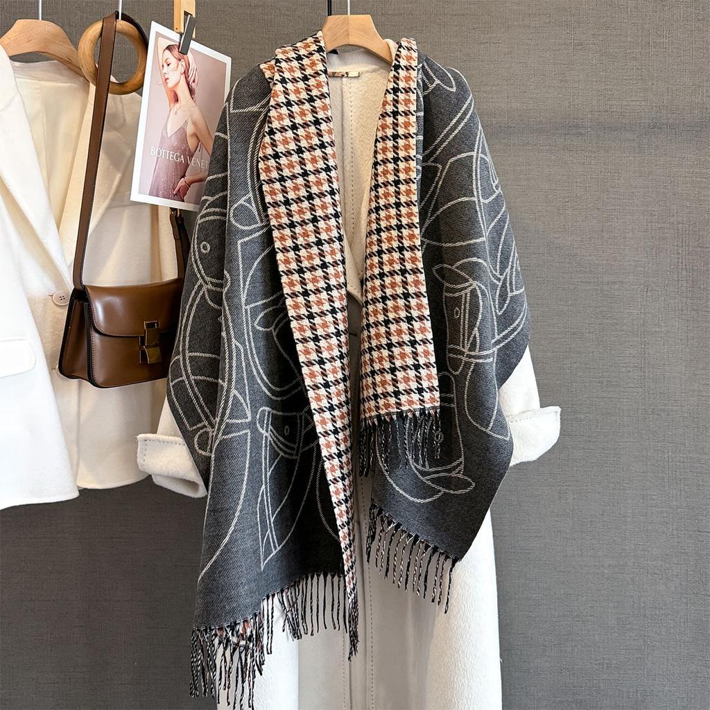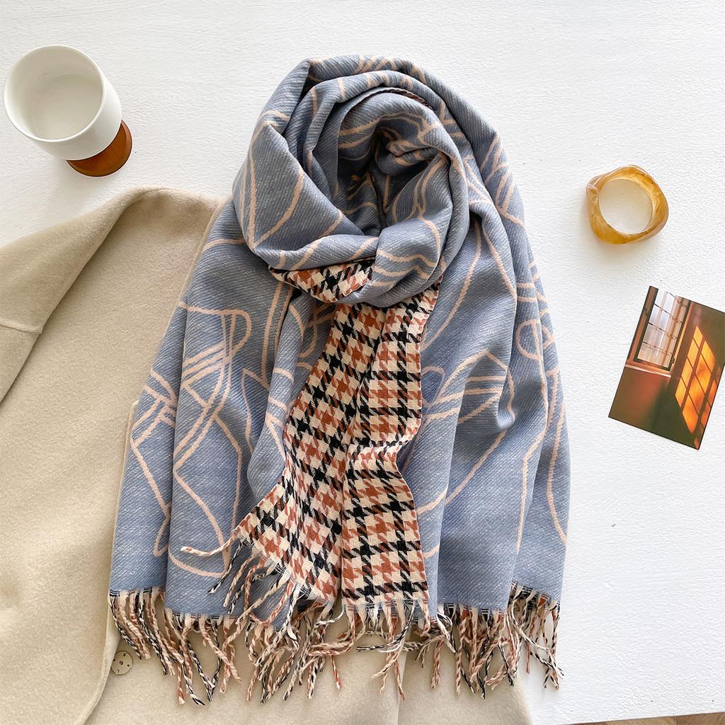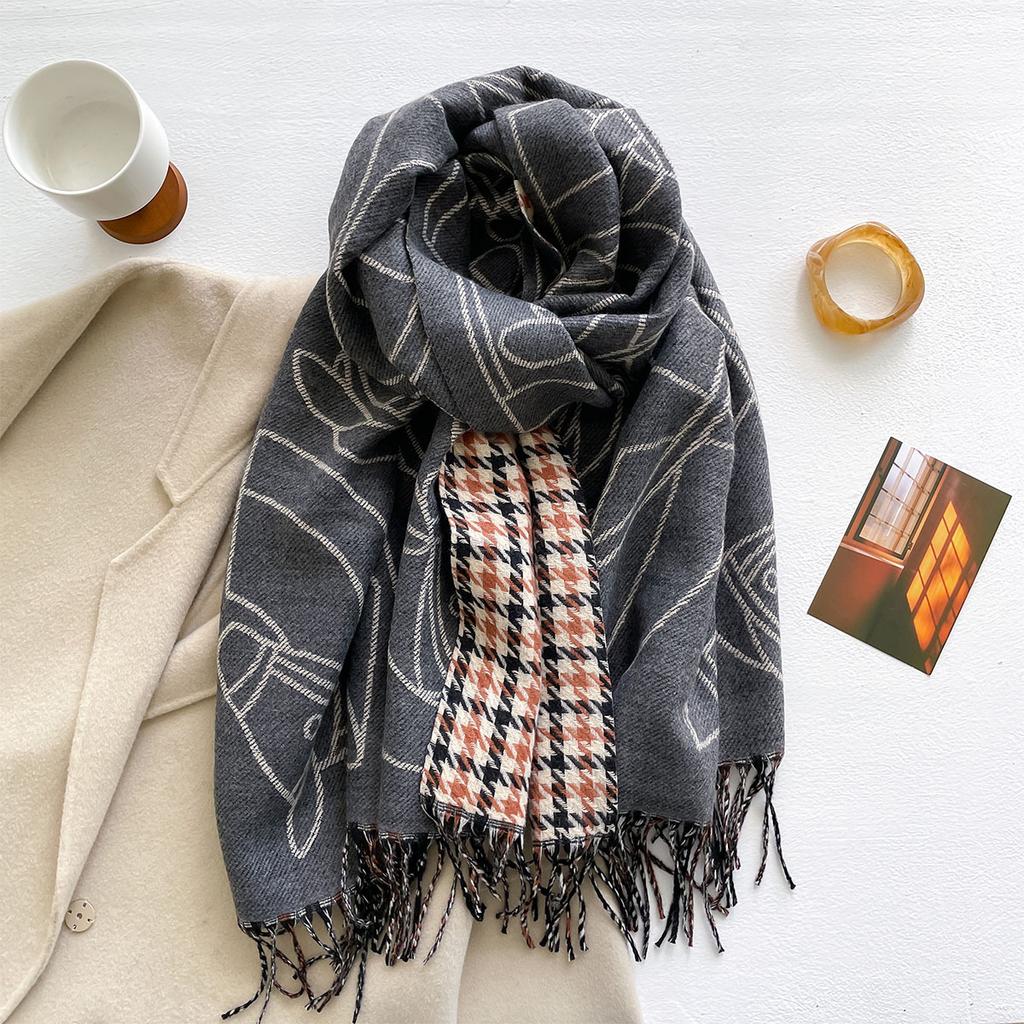Осенне-зимний утолщенный двусторонний жаккардовый шарф из искусственного кашемира, женский длинный шарф с кисточками, многофункциональный теплый шарф-шаль