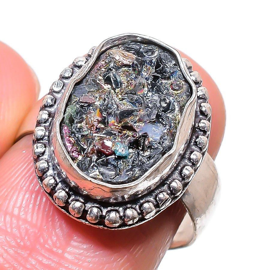 Титан Друза Драгоценный камень 925 Стерлинговое серебро Ювелирное кольцо Размер 7.5