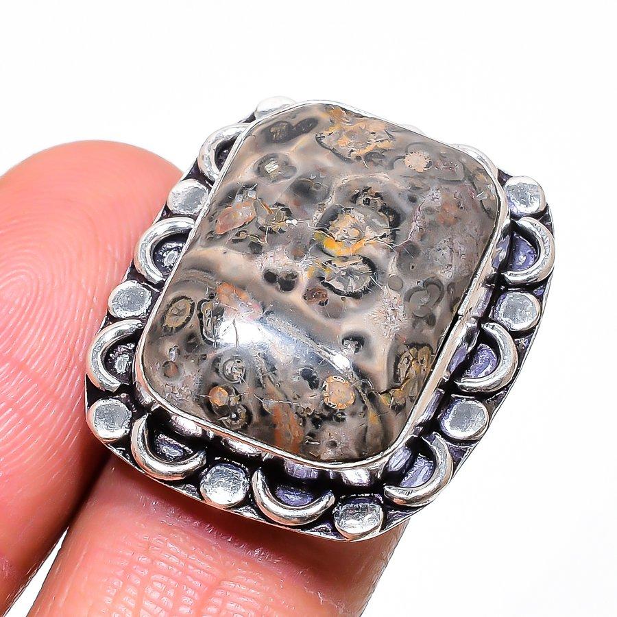 Ювелирное кольцо из стерлингового серебра 925 пробы с драгоценным камнем из кожи леопарда, размер 7