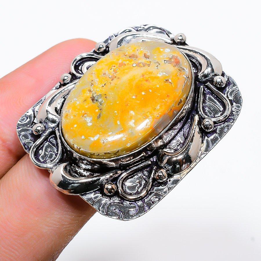Драгоценный камень Яшма Шмель Серебро 925 пробы Подарок Ювелирное изделие Кольцо Размер 11
