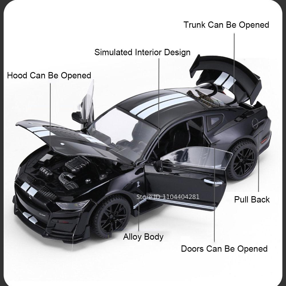 1:18 Мустанг ГТ500 Аккорд Сплав Машины Литые Модели Игрушки 4 Двери Открываются Со Звуком Светом Инерционные Машины Детский Подарок на День Рождения