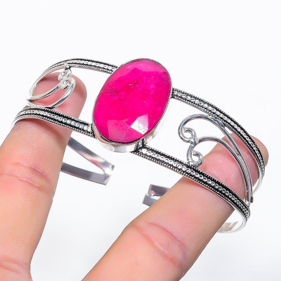 Рубин(Смоделированный) Драгоценный камень Стерлинговое серебро 925 Прорезной браслет-манжета Регулируемый