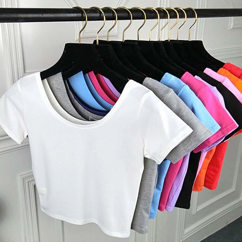 Модная и простая бестселлерная футболка с U-образным вырезом, однотонная женская сексуальная футболка с короткими рукавами для девочек — купить товар онлайн с бесплатной доставкой по всему миру!