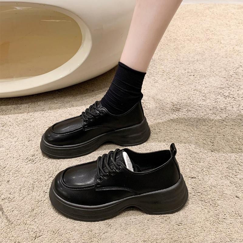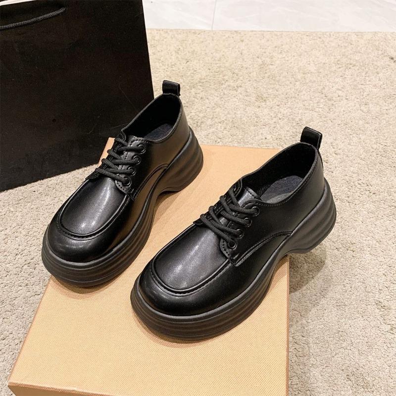 Кожаная обувь на шнуровке, женские лоферы, новая универсальная и нежная обувь на толстой подошве, увеличивающая рост