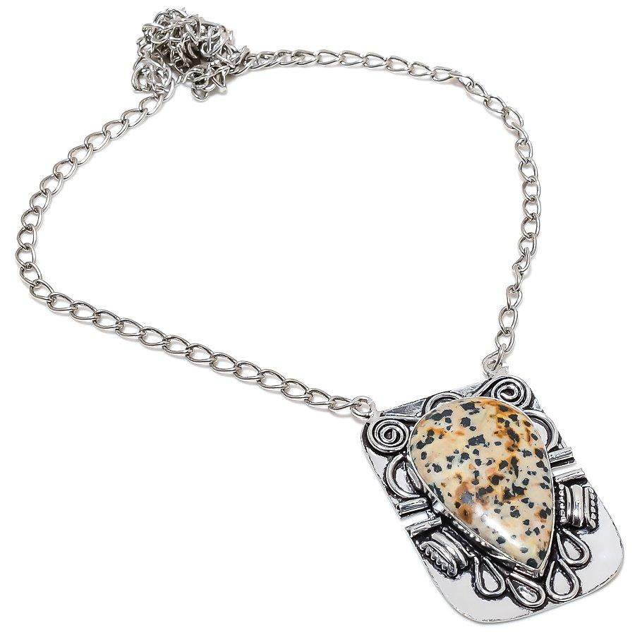 Далматиновая яшма драгоценный камень 925 стерлинговое серебро подарок ювелирное изделие ожерелье 18"