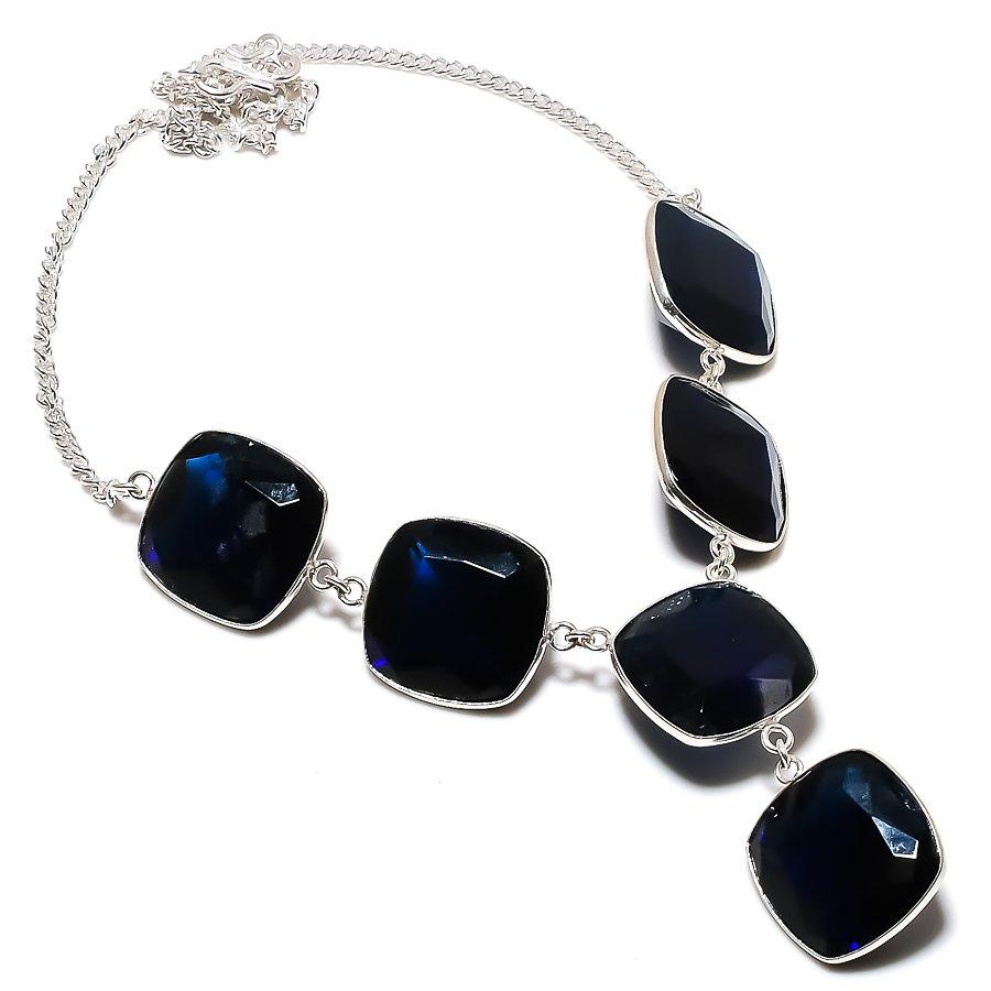 Ювелирные изделия из серебра 925 пробы с драгоценным камнем London Blue Topaz, 18 дюймов