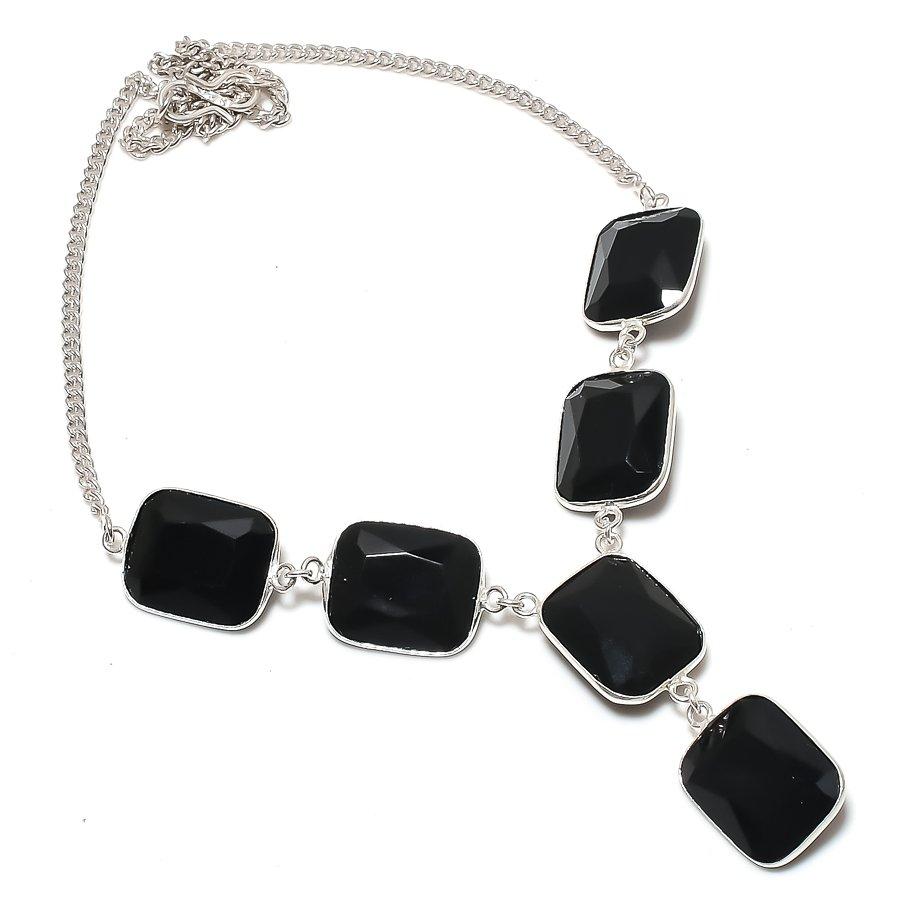 Ожерелье из серебра 925 пробы с черными шпинелями и драгоценными камнями 18 дюймов
