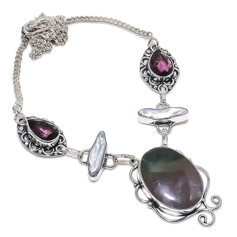 Bloodstone, Pearl Gemstone 925 Sterling Silver Jewelry Necklace 18"