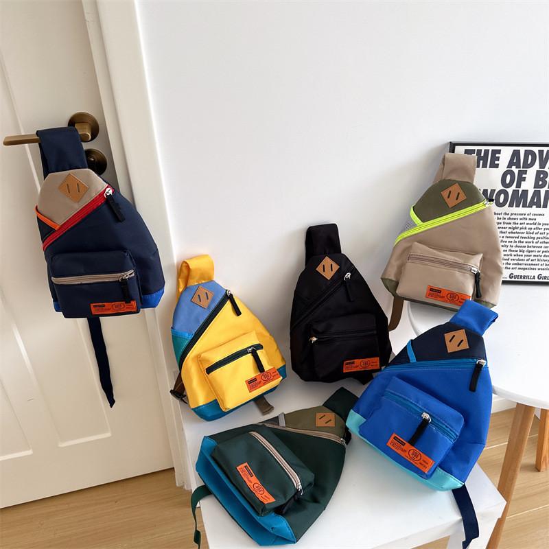 Плечевая детская модная сумка с дизайном в стиле колор-блок для повседневных школьных прогулок