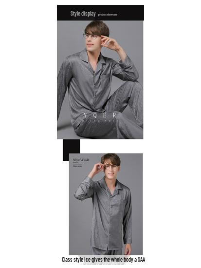 Побалуйте себя непревзойденным комфортом с этим мужским комплектом пижамы с длинным рукавом из шелка, разработанным специально для переходных сезонов весны и осени. Этот комплект, изготовленный из высококачественного полиэстера, предлагает изысканное шелковистое ощущение, мягкое на ощупь.. Длинные рукава обеспечивают именно то количество тепла, которое нужно, гарантируя уютный и спокойный ночной сон.. Идеально для тех, кто хочет сочетать стиль и комфорт в своей ночной одежде.