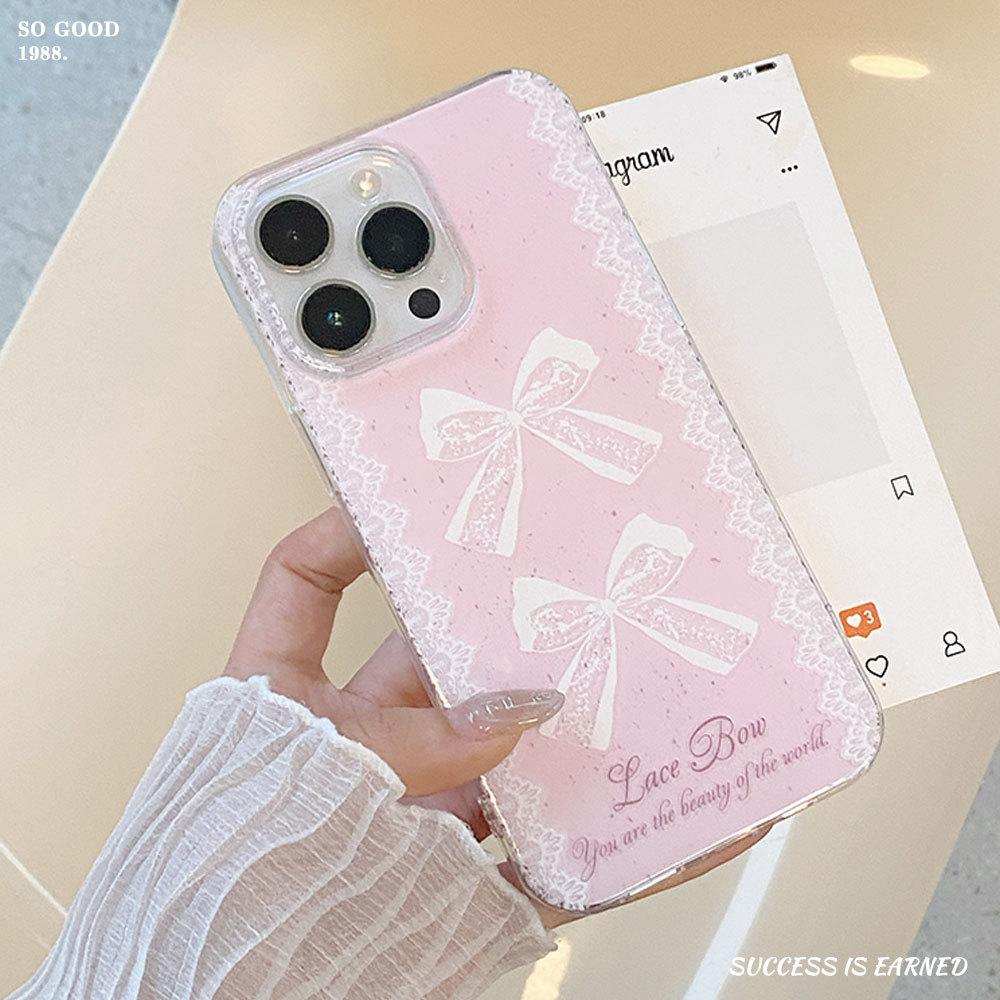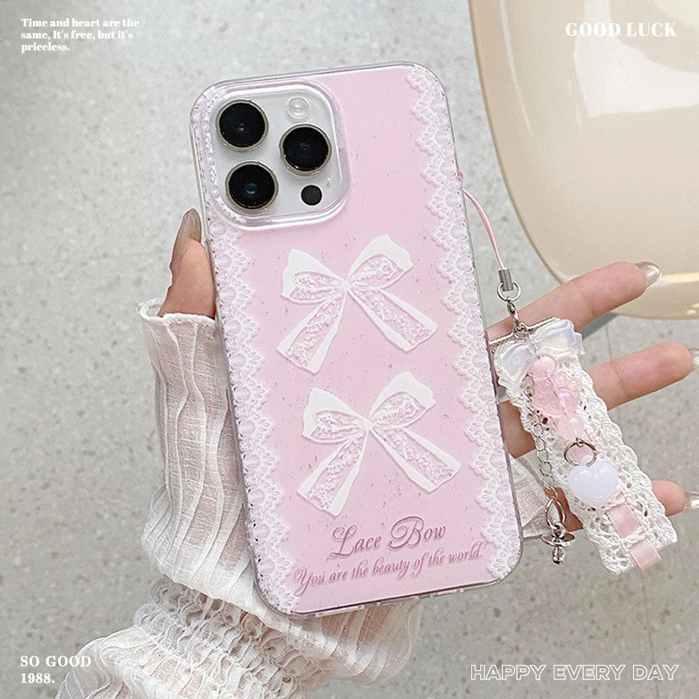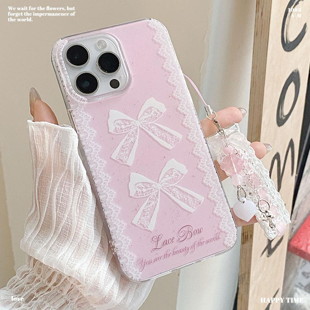 New Large Hole IMD Fresh Bow Suitable for Apple 16 Mobile Phone Case 15PROMAX Protective Case Korean 14Pro
