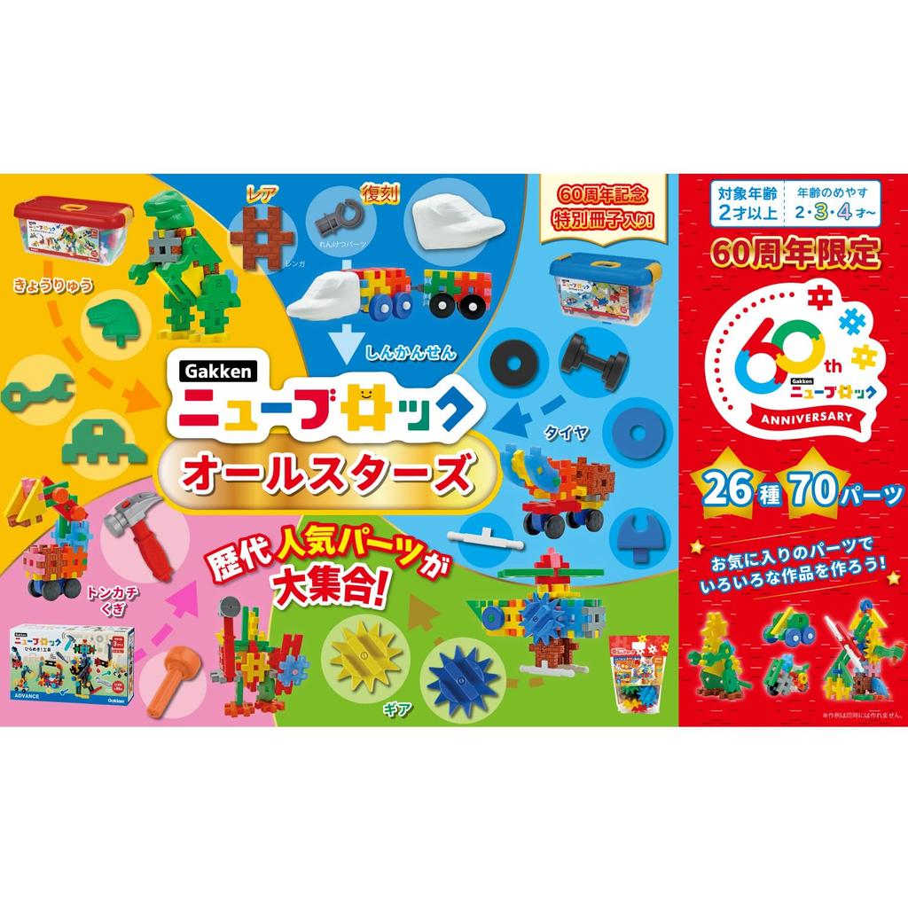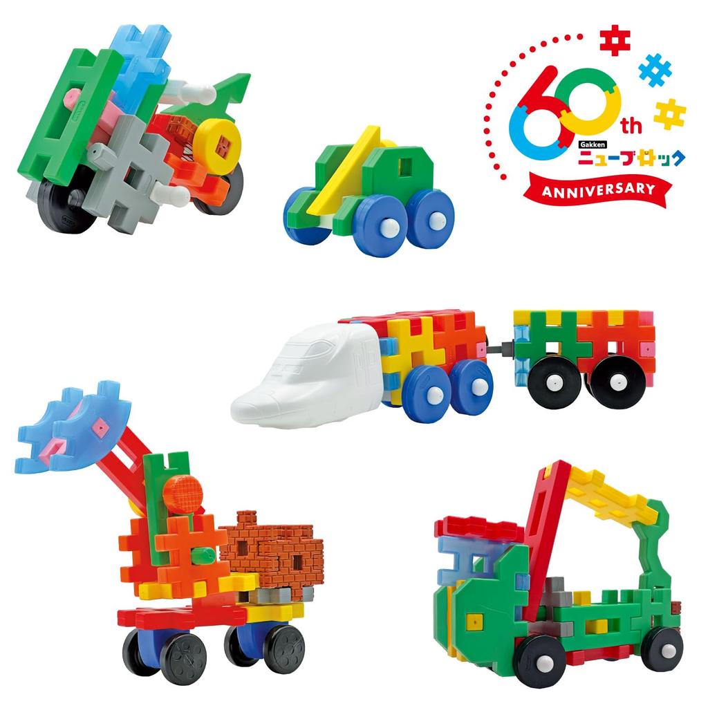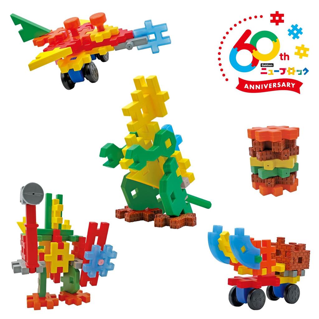 New Blocks, with its endless possibilities for play, stimulates children's creativity and creates rich experiences. Its soft, large size makes it easy to assemble and safe for even the smallest children. Unlike typical stacking blocks, New Blocks allow children to connect blocks sideways, at right angles, insert blocks, sandwich blocks, and assemble boxes, enhancing their three-dimensional recognition and fostering creativity. The wide variety of parts and colors is another appealing feature of New Blocks. To celebrate the 60th anniversary of New Blocks, we've gathered all the most popular parts from past generations! Enjoy all the iconic parts from popular sets, including tires for building vehicles and gear parts for moving blocks, all in one set!
